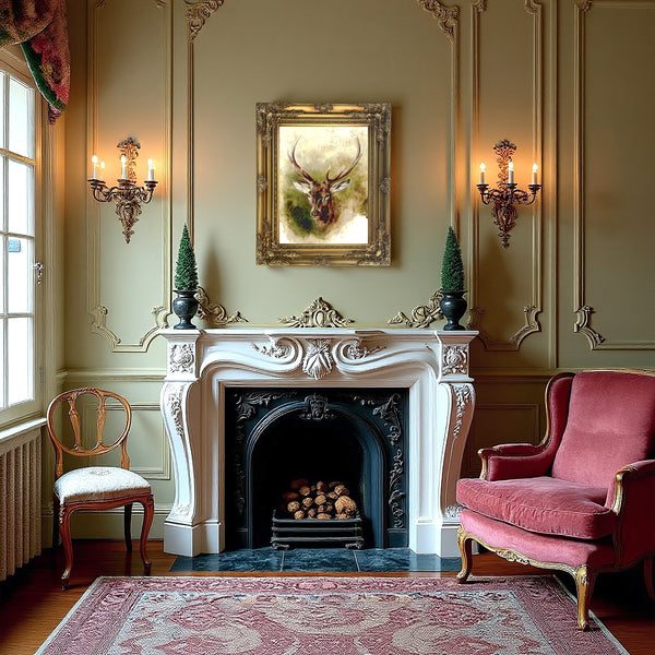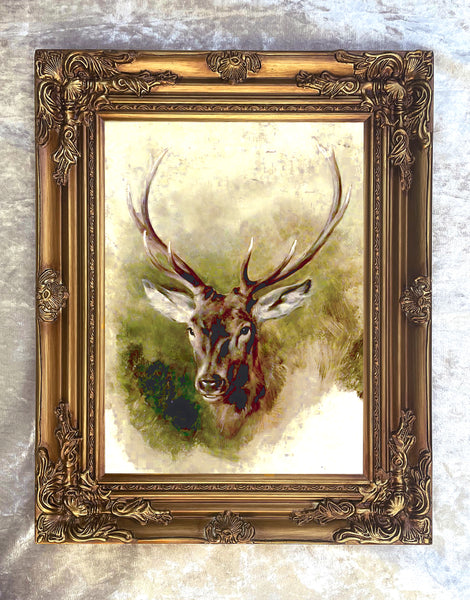 A Very Fine Oleograph on Stretched Canvas in an Ornate Hand Finished Rococo Frame, depicting a Stag after the original by Edwin Landseer. The oleograph measures 16 inches x 12 inches with overall measurements in the frame being 22 inches x 18 inches. The oleograph has the appearance, patina & texture of an oil painting.