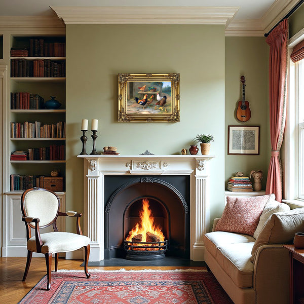 A Fine Oleograph on Stretched Canvas in an Ornate Rococo Frame, depicting Chickens & Chicks in a Barnyard. The Oleograph measures 16 inches x 12 inches with overall measurements in the Hand Painted Gesso Gallery frame being 22 inches x 18 inches. The Oleograph has a hand applied varnished finish with replicates the appearance, craquelure, patina & texture of an oil painting.