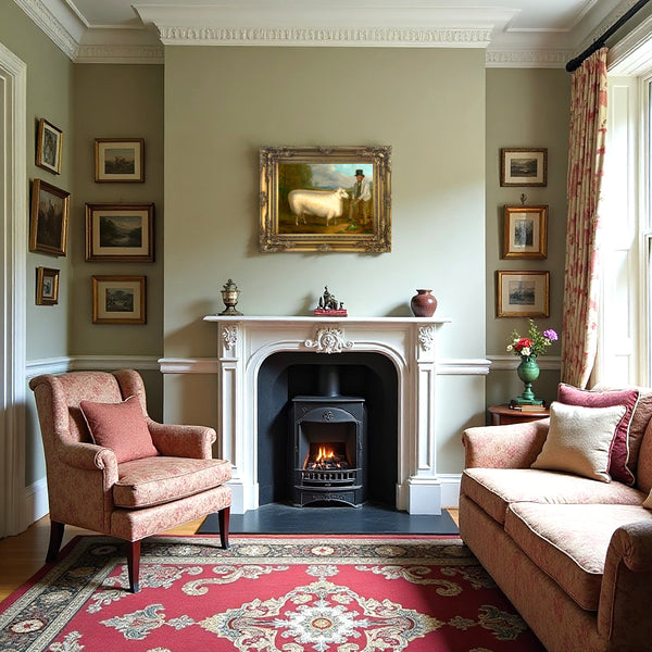 A Fine Oleograph on Stretched Canvas in an Ornate Rococo Frame, "Portrait of a Prize Sheep & Farmer in a Landscape". The Oleograph measures 16 inches x 12 inches with overall measurements in the Hand Painted Gesso Gallery frame being 22 inches x 18 inches. The Oleograph has a hand applied varnished finish with replicates the appearance, craquelure, patina & texture of an oil painting.
