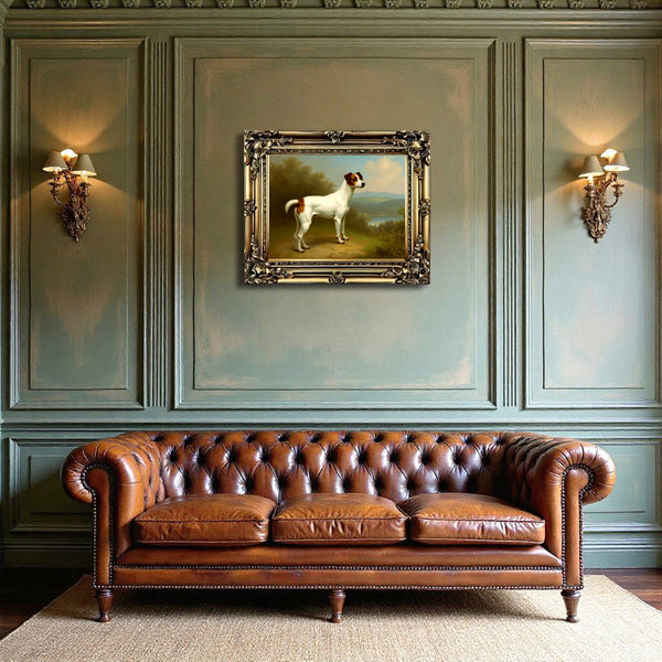 Beautiful Oleograph on Canvas - Jack Russell Terrier in a Landscape