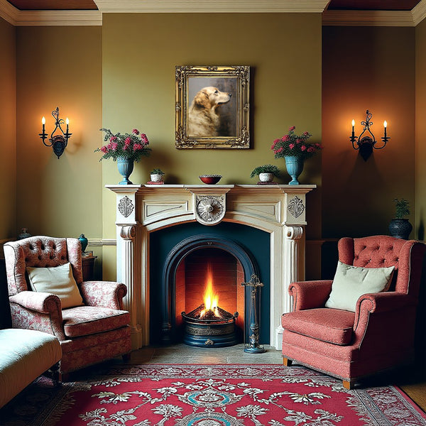 A Very Fine Oleograph on Stretched Canvas in an Ornate Hand Finished Rococo Frame, depicting a Golden Retriever. The oleograph measures at 16 inches x 12 inches with overall measurements in the frame at 22 inches x 18 inches. The Oleograph has the appearance, texture & patina of an oil painting.