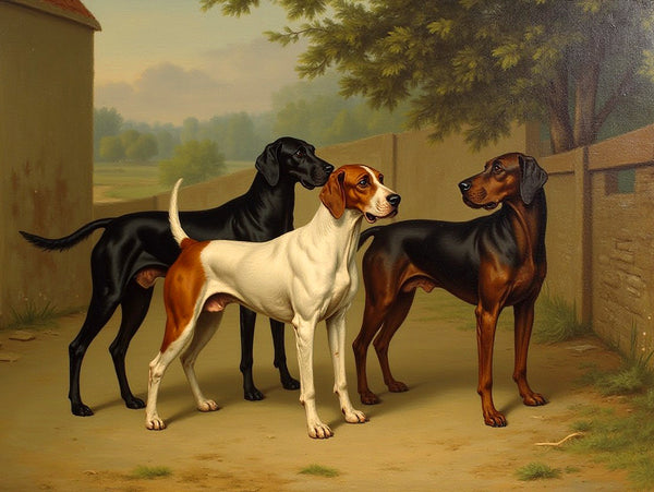 A very fine Lithograph on Canvas depicting 3 Foxhounds in a stable yard. The Lithograph measures 16 inches x 12 inches & is elegantly framed in an ornate rococo gilt gesso gallery frame with overall measurements being 22 inches x 18 inches. The Lithograph has a hand applied varnished finish which replicates the appearance, craquelure, patina and texture of an oil painting. Each Lithograph is a master-piece in its own right and carefully hand-finished to recreate the timeless look and appeal of an original Oil Painting.