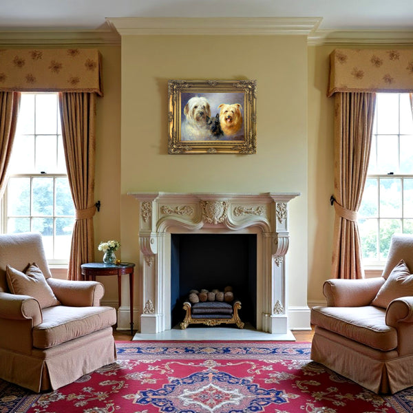 A Very Fine Oleograph on Stretched Canvas in an Ornate Hand Finished Rococo Frame, study of a Group of 3 Terriers. The oleograph measures 16 inches x 12 inches with overall measurements in the frame being 22 inches x 18 inches. The Oleograph has a hand applied varnished finish which replicates the appearance, craquelure, patina and texture of an oil painting. Each Oleograph is a master-piece in its own right and carefully hand-finished to recreate the timeless look and appeal of an original Oil Painting.