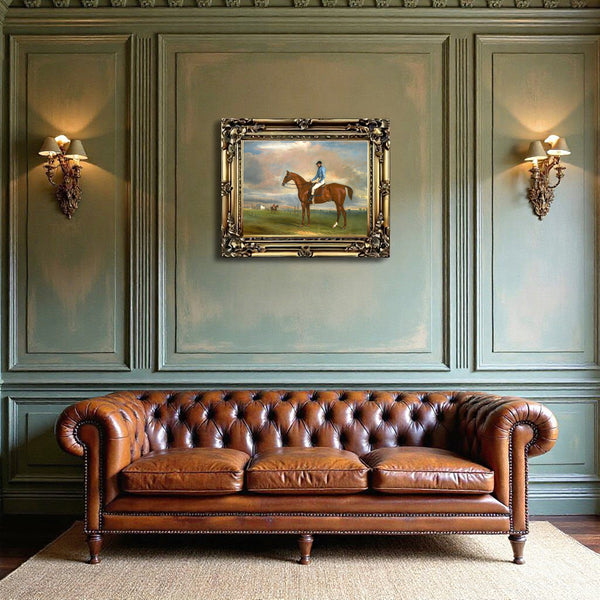 A Fine Oleograph on Stretched Canvas in an Ornate Rococo Frame, depicting a Bay Racehorse with Jockey Up, after the original by John Ferneley. The oleograph measures 16 inches x 12 inches with overall measurements in the Hand Painted Gesso Gallery frame at 22 inches x 18 inches. The Oleograph has a hand applied varnished finish which replicates the appearance, craquelure, patina & texture of an oil painting. Each Oleograph is a master-piece in its own right and carefully hand-finished to recreate the timeless look and appeal of an original Oil Painting.