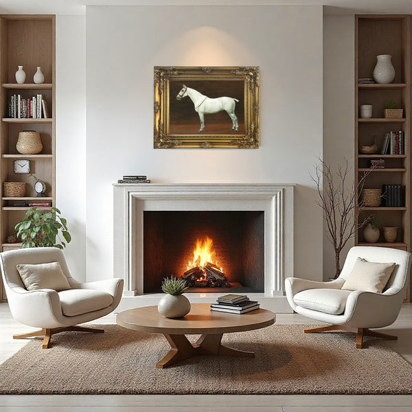 A Superb Oleograph on Stretched Canvas in an Ornate Rococo Frame, depicting a Dapple Grey Gelding. The oleograph measures 16 inches x 12 inches with overall measurements in the Hand Painted Gesso Gallery frame at 22 inches x 18 inches. The oleograph has a hand applied varnished finish with replicates the appearance, craquelure, patina & texture of an oil painting.