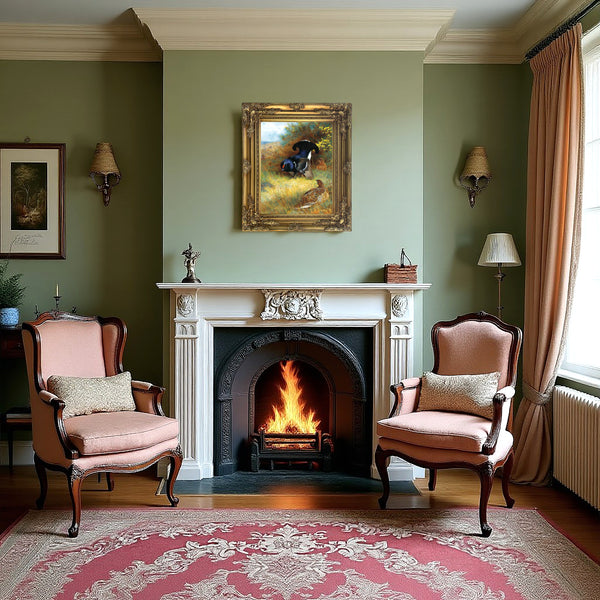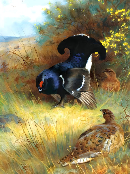 A Very Fine Lithograph on Stretched Canvas in an Ornate Hand Finished Rococo Frame, depicting "Black Game in a Copse "after the original by Archibald Thorburn. The Lithograph measures 16 inches x 12 inches with overall measurements in the frame being 22 inches x 18 inches. The Lithograph has the appearance, patina & texture of an oil painting.
