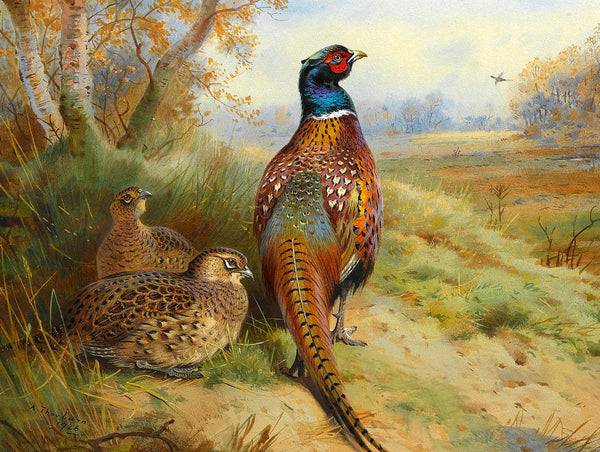 Cock & Hen Pheasant in a Copse - Fine Oleograph on Canvas after Thorburn