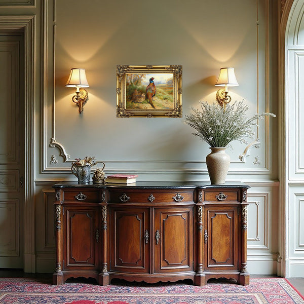 A Very Fine Oleograph on Stretched Canvas in an Ornate Hand Finished Rococo Frame, depicting a Cock & Hen Pheasant in a Copse after the original by Archibald Thorburn. The oleograph measures at 16 inches x 12 inches with overall measurements in the frame at 22 inches x 18 inches. The Oleograph has a hand applied varnished finish which replicates the appearance, craquelure, patina & texture of an oil painting. Each Oleograph is a master-piece in its own right and carefully hand-finished to recreate the timeless look and appeal of an original Oil Painting.