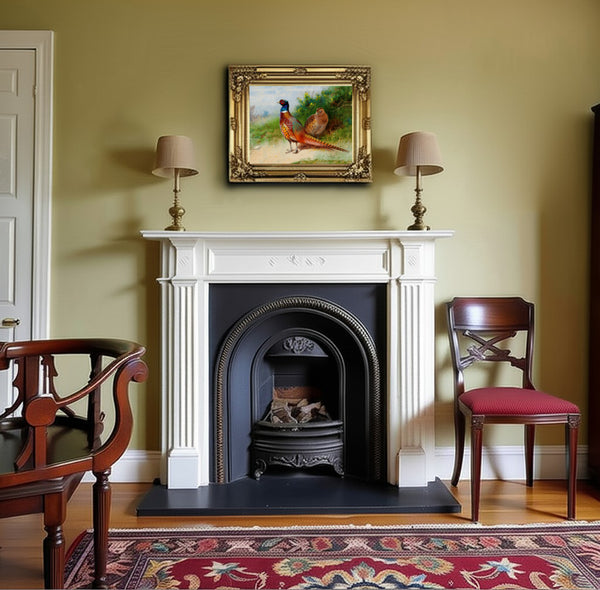 A Very Fine Lithograph on Stretched Canvas in an Ornate Hand Finished Rococo Frame, depicting a Cock & Hen Pheasant in a Woodland Copse after the original by Archibald Thorburn. The Lithograph measures 16 inches x 12 inches with overall measurements in the frame being 22 inches x 18 inches. The Lithograph has the appearance, patina & texture of an oil painting.