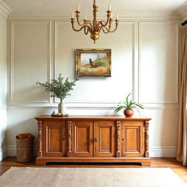 An Excellent Lithograph on Canvas in a Hand Finished Ornate Gilt Gesso Rococo Frame depicting a Cock Pheasant & Hen after the original by Archibald Thorburn. The Lithograph measures 16 inches x 12 inches with overall measurements in the frame being 22 inches x 18 inches. The Lithograph has the appearance, patina & texture of an oil painting.