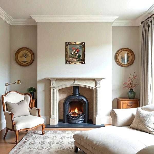 An Exquisite Oleograph on Stretched Canvas in an Ornate Rococo Frame, depicting the Emperor Napoleon on Marengo. The oleograph measures 16 inches x 12 inches with overall measurements in the frame being 22 inches x 18 inches. The Oleograph has a hand applied varnished finish which replicates the appearance, craquelure, patina & texture of an oil painting. Each Oleograph is a master-piece in its own right and carefully hand-finished to recreate the timeless look and appeal of an original Oil Painting.
