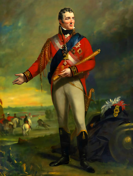 A Fine Lithograph on Stretched Canvas in an Ornate Rococo Frame, depicting Arthur Wellesley - The Duke of Wellington during a Campaign. The Lithograph measures 16 inches x 12 inches with overall measurements in the Gilt Gesso Gallery frame being 22 inches x 18 inches. The Lithograph has a hand applied varnished finish which replicates the appearance, craquelure, patina & texture of an oil painting. Each Lithograph is a master-piece in its own right and carefully hand-finished to recreate the timeless look and appeal of an original Oil Painting.