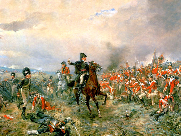 A Fine Oleograph on Stretched Canvas in an Ornate Rococo Frame, depicting The Duke of Wellington at Waterloo. The oleograph measures 16 inches x 12 inches with overall measurements in the Gilt Gesso Gallery frame being 22 inches x 18 inches. The Oleograph has the appearance, patina & texture of an oil painting