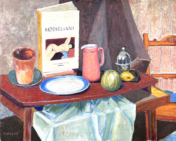 An Excellent Vintage C20th Impressionist Oil on Canvas "The Breakfast Table" by K Miller. This fine colourful example of Mid C20th British Impressionist Art measures 30 inches x 24 inches & is unframed. The painting is in good condition with no damage or losses & is signed by the artist (lower left).