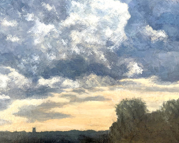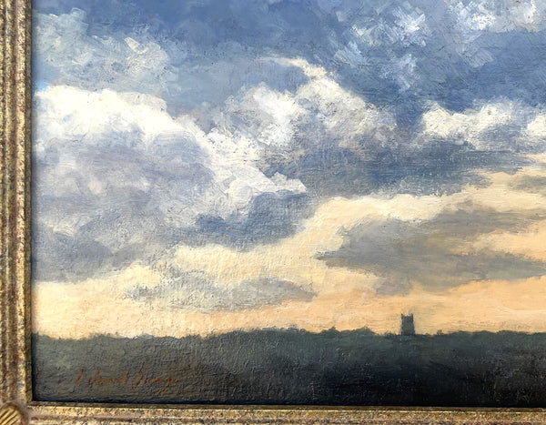 An Exquisite Vintage Mid C20th Oil on Canvas Board depicting a Twilight Landscape, listed as circle of Edward Seago. This delightful painting measures 16 inches x 12 inches & is framed in a fine ornate rococo gilt wood & gesso gallery frame with overall measurements being 19 inches x 15 inches. The painting is in excellent condition with no damage or losses. The painting bears the indistinct signature "Edward Seago" (lower left) but in the absence of provenance, the painting is listed as "circle of Edward Seago" or "follower of Edward Seago".