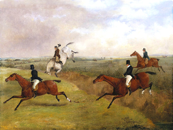 A Fine Oleograph on Stretched Canvas in an Ornate Rococo Frame, depicting The Grand Leicestershire Steeplechase. The oleograph measures 16 inches x 12 inches with overall measurements in the Gilt Gesso Gallery frame being 22 inches x 18 inches. The oleograph has a hand applied varnished finish which replicates the appearance, craquelure, patina & texture of an oil painting.