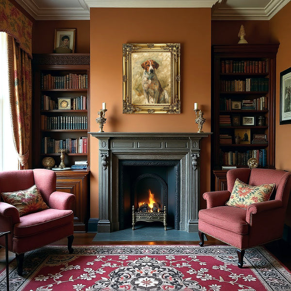 A Very Fine Oleograph on Stretched Canvas in an Ornate Hand Finished Rococo Frame, depicting a Foxhound after the original by John Emms. The oleograph measures 16 inches x 12 inches with overall measurements in the frame being 22 inches x 18 inches. The Lithograph is handcrafted in Norfolk & has the appearance, patina & texture of an oil painting.