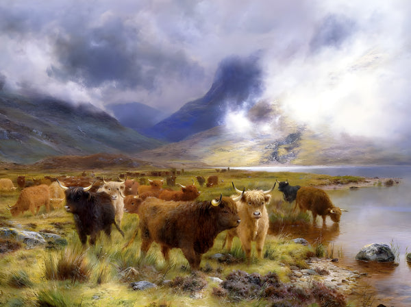 Highland Cattle by the Tay - Fine Oleograph on Canvas after Bosworth Hurt